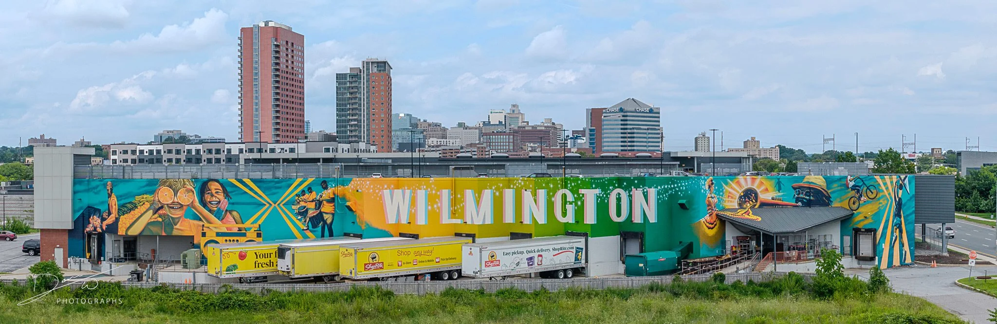 After nearly three years and three design incarnations, 2025 was the summer of ShopRite in Wilmington, Delaware. This was commissioned by ShopRite, with contributions made from the city of Wilmington, as a major beautification project in the once industrial, southern portion of the city. This work now serves as a gateway visual for residents and visitors alike, but the imagery is exclusively a nod to urban joy: summer barbecues, children playing, multicultural festivals, youth sports, and of course, music. This effort arrives just in time for the 30th anniversary of this Delaware family-owned grocer, started by Bernie Kenny thirty years ago.